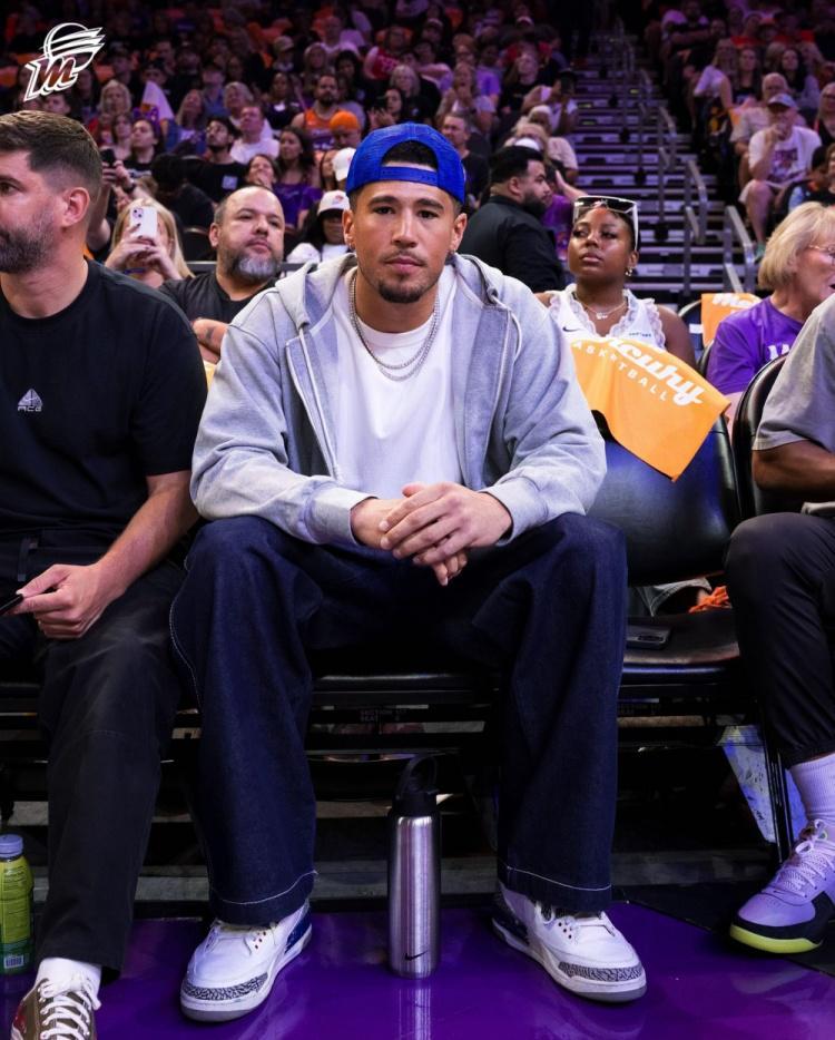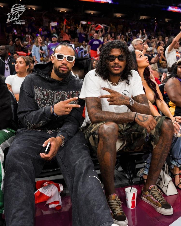 直播吧9月3日讯 早些时候,凤凰城水星在主场85-79击败来访的印第安纳狂热,本场比赛太阳球星布克、狄龙、罗伊斯-奥尼尔还有杰伦-格林都出现在了场边,杰伦-格林更是带着女友德雷亚-米歇尔一起。